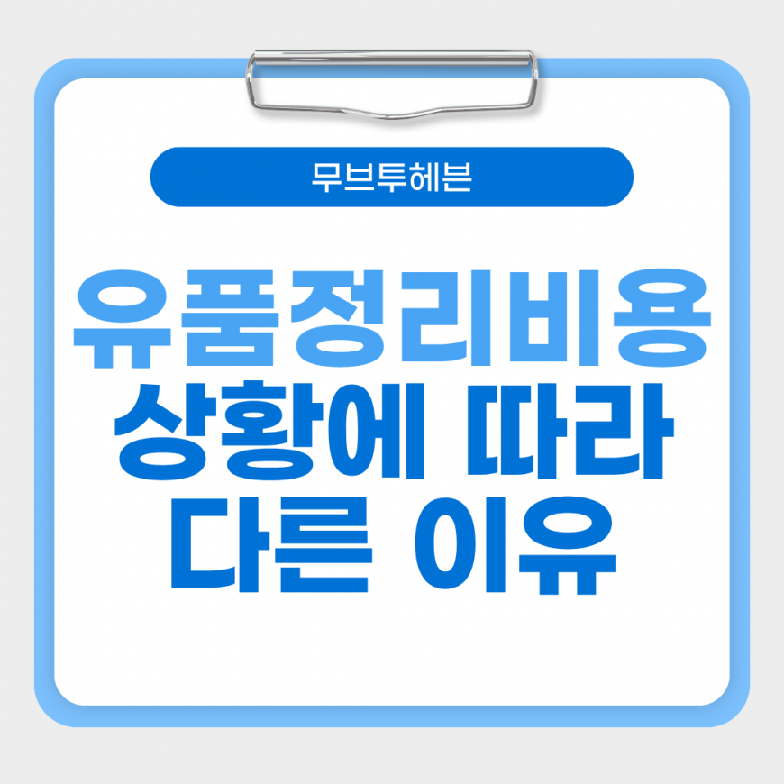 가구·가전을 버려야 한다면 대형폐기물 수거비(5만~10만 원/개), 문서·서류 파기, 은행·공과금 차명 정리 등 별도 서비스가 추가될 경우 최종 견적은 1.5~2배까지 차이 날 수 있습니다.